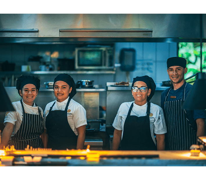 We believe our restaurants are of the utmost importance to send guests home with exceptional memories. Our kitchen staff must exceed expectations and make sure guests have an unforgettable gastronomical experience. We are always thankful to the kitchen teams and we support them with training and education. They are at the heart of the Nayara experience.