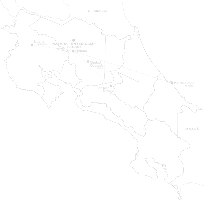 Nayara Tented Camp is located ten minutes away from the town of La Fortuna de San Carlos, in the Northern Highlands of Costa Rica. The quiet and charming town is centered on a beautiful park with colorful gardens and a large church.