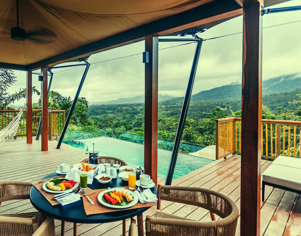 Immerse yourself in the tranquil haven of your generously sized Nayara Tent, where opulence and nature intertwine seamlessly. Awaken your senses as the crystal-clear waters of your private pool, nourished by nearby hot springs, embrace your skin, leaving you refreshed and rejuvenated. Indulge in a truly unique and authentic luxury experience as you savor breakfast on your private terrace. Let the morning sun caress your face while you delight in the tantalizing flavors of a thoughtfully crafted meal.