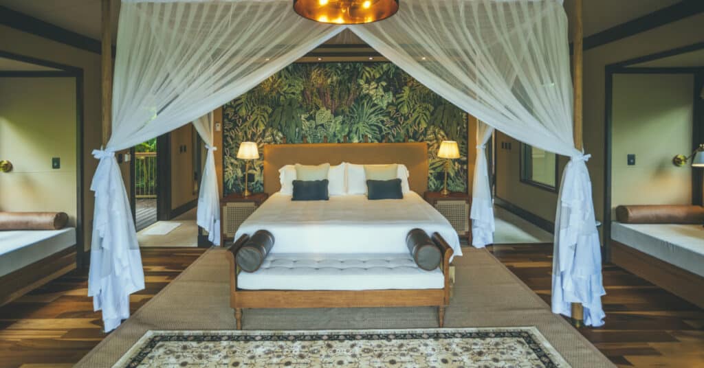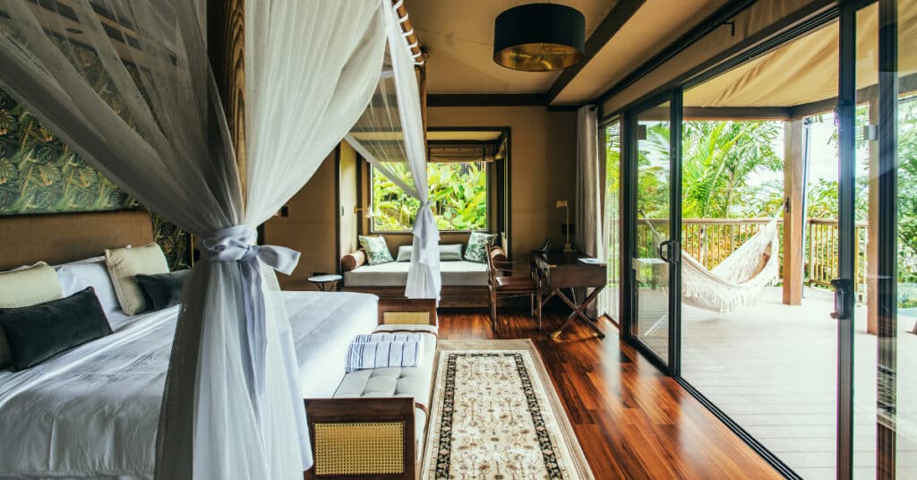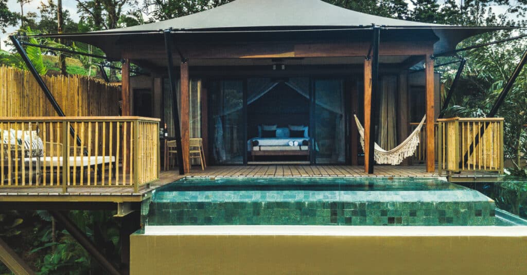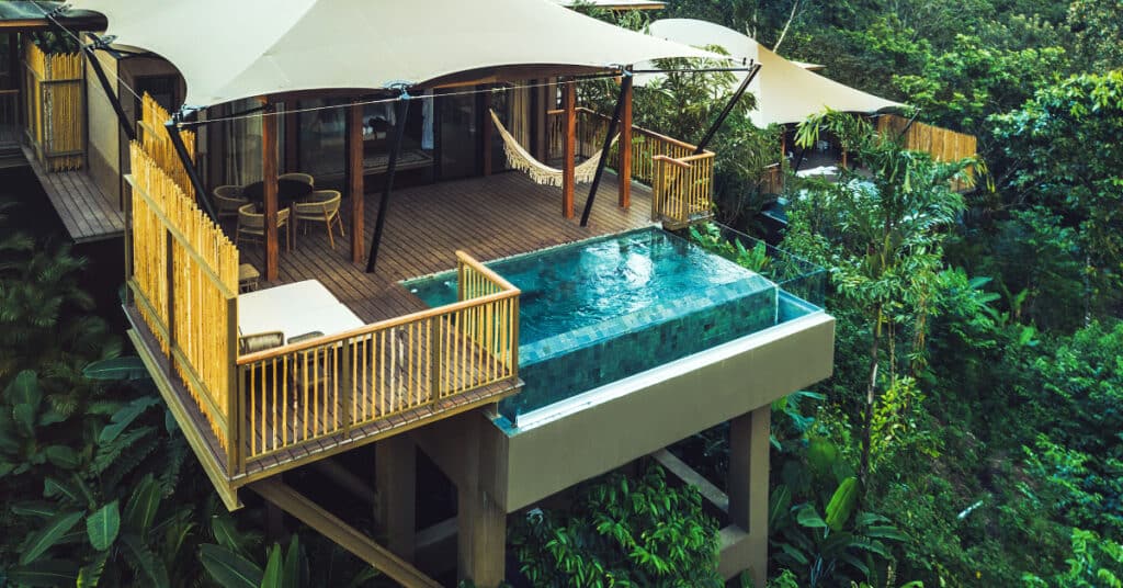 The Nayara Tent is an eco-luxury sanctuary nestled in Costa Rica’s vibrant rainforest. Elevated on stilts, these spacious tents offer breathtaking vistas while minimizing environmental impact. Experience the “Pura Vida” vibe as you immerse yourself in sustainable luxury and unparalleled natural beauty.